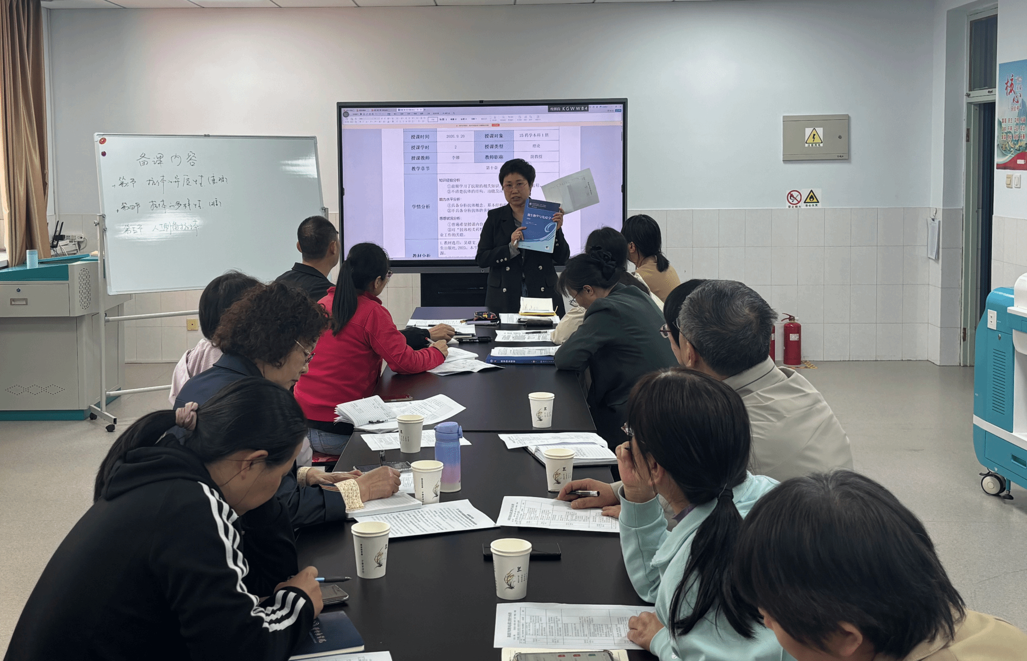 比赛现场氛围热烈、秩序井然,首场微免、生化备课团队依次登场,全面展示集体备课成果。两个团队围绕本科课程代表性内容,按“课程初步设计介绍-团队研讨与优化-方案完善与总结”流程,完整呈现45分钟备课过程,展现扎实教学功底与严谨教研态度,获得评委高度认可。尤其在团队研讨与优化环节,现场气氛热烈而专注。教师们围绕主备人提出的教学难点各抒己见、深入交流,在观点碰撞与智慧交锋中集思广益,逐一破解教学中的难点与堵点,研讨氛围浓厚且富有实效。